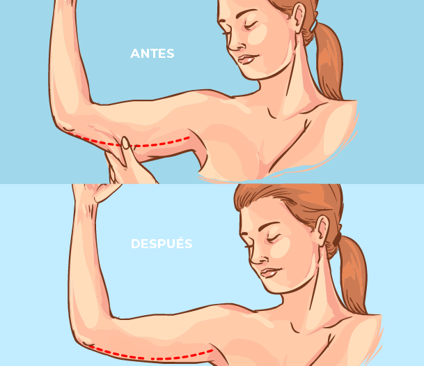 Si bien el ejercicio puede fortalecer y mejorar el tono muscular de los brazos, no puede solucionar el problema de exceso de piel que ha perdido elasticidad.